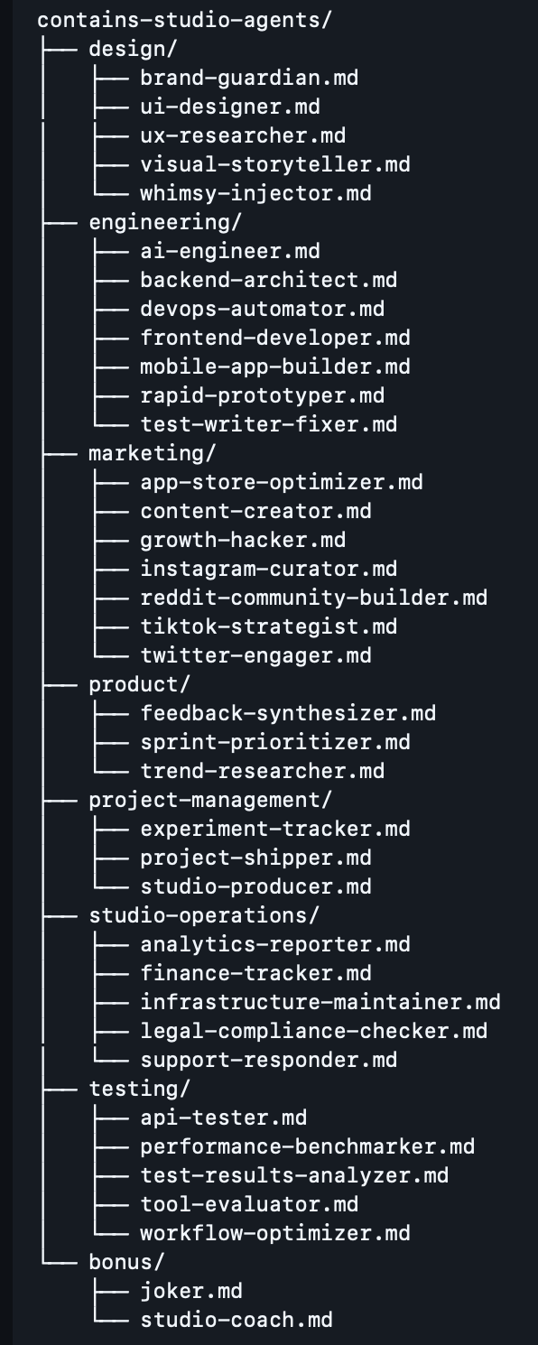 며칠 전 알게 된, Studio AI Agents Github 레포지토리 (https://github.com/contains-studio/agents.git)는 한꺼번에 많은 동료들을 한꺼번에 얻게 된 멋진 경험을 선사했다.
