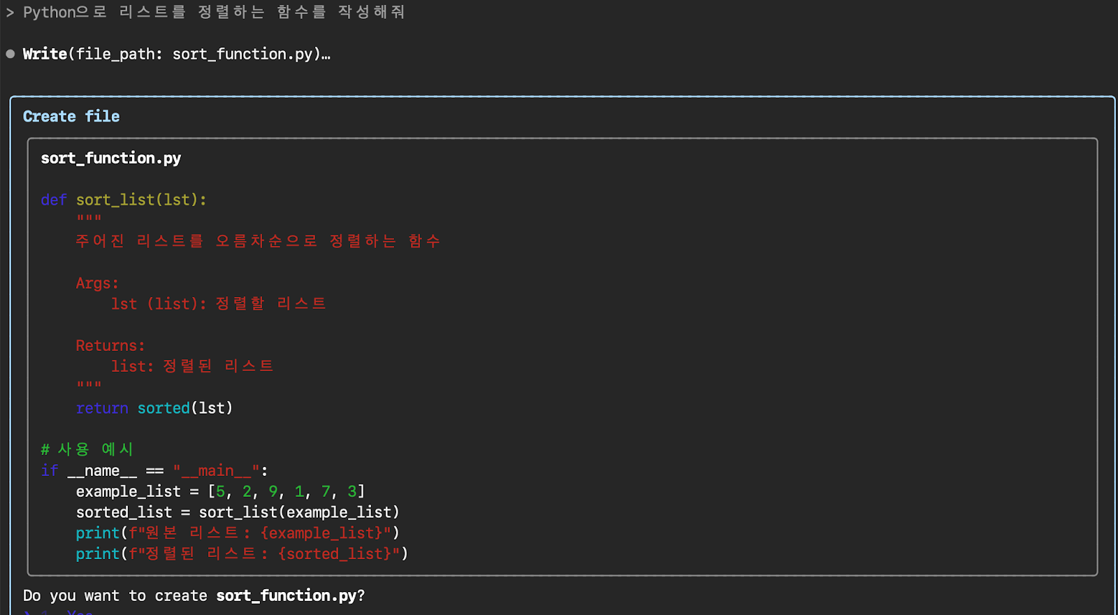 우측 이미지를 보면 어떤식으로 사용하는지 잘 알 수 있다. “Python으로 리스트를 정렬하는 함수를 작성해 줘”라고 하면 저렇게 코드를 작성해 준다. 코드베이스 개요 파악을 위해서는, “이 코드베이스의 개요를 알려줘”, “여기서 사용된 주요 아키텍처 패턴은 무엇인가요?”, “주요 데이터 모델을 설명해 줘” 같은 프롬프트를 사용하고, “사용자 인증을 처리하는 파일들을 찾아줘”, “이 인증 파일들이 어떻게 함께 작동하는지 알려줘”, “프런트엔드에서 데이터베이스까지 로그인 프로세스를 추적해 줘” 등의 프롬프트를 통해 원하는 코드를 쉽게 찾을 수도 있다. 오류를 진단하고, 테스트 작업을 개선하고, 개발한 코드들에 자동으로 주석을 달고 문서화하는 작업도 자동화한다. (출처: https://www.magicaiprompts.com/docs/claude/)